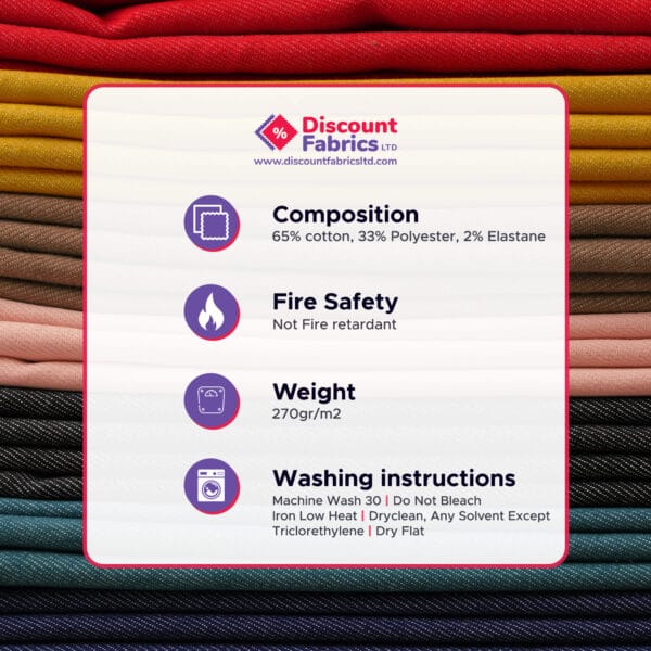Stretch Denim Fabric (2% Elastane) | Medium Weight 270gsm | Cotton Rich Blend