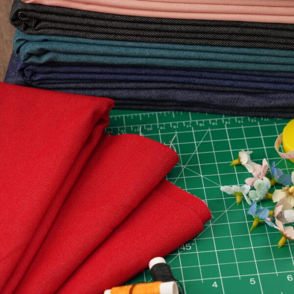Create stylish, comfortable garments with our Medium Weight Stretch Denim Fabric. Unlike rigid, heavy denim, this fabric features a composition of 2% Elastane, giving it a gentle “comfort stretch” that moves with your body—perfect for fitted jeans, skirts, and structured dresses.